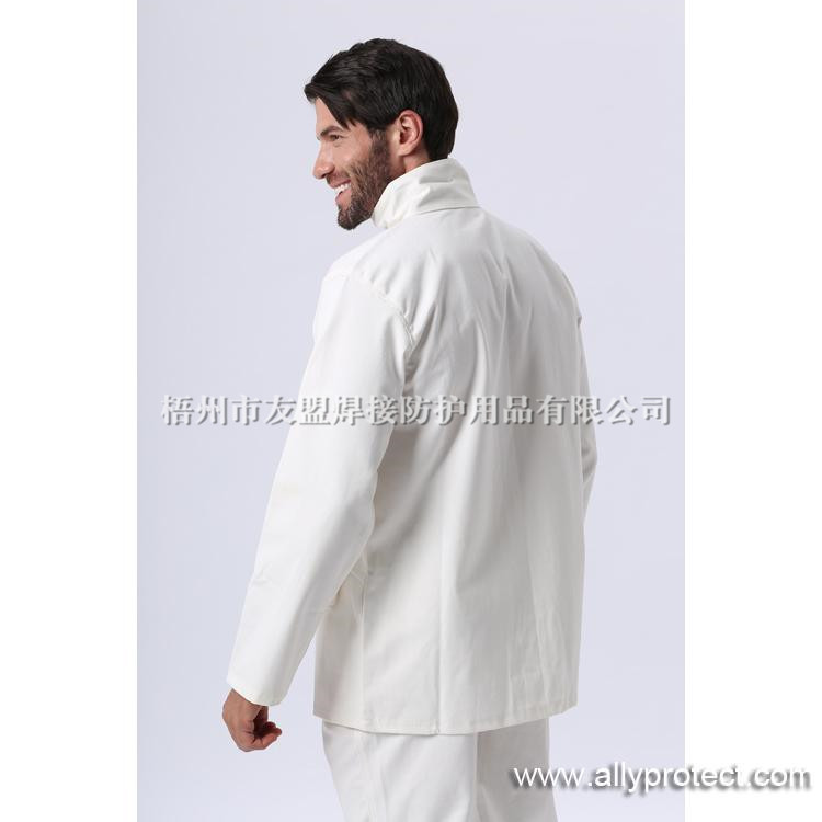 - 產品描述: 白色防火阻燃服,可水洗不縮水,推薦適用于燒焊、鑄造、化工、石油、機電等有火焰或火警的危險行業。